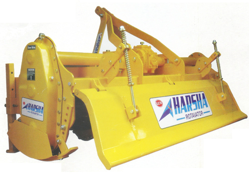 RK MARK AGROS “HARSHA” Rotavator is a rotary tillage, tractor operated implement attached to a three point linkage of the tractor and are driven by PTO (Power take off) which cuts, pulverizes, mixes and level the soil in a single pass, and can be most economically and effectively be used by replacing 1 Tine Tiller, 2 Disc harrow, 3 Puddler and 4 Levelers. It works on the soil by means of rotating blades.